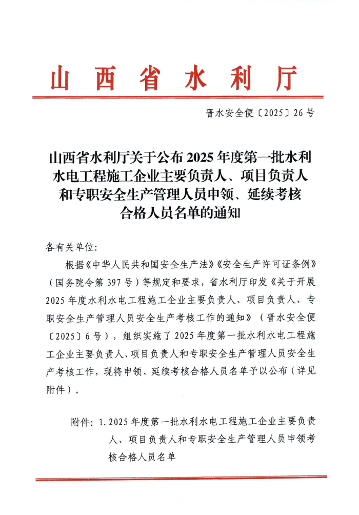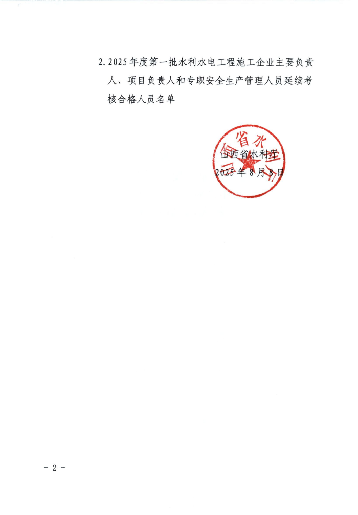 2.2025年水利水电工程施工企业主要负责人、项目负责人和专职安全生产管理人员延续考核合格人员名单