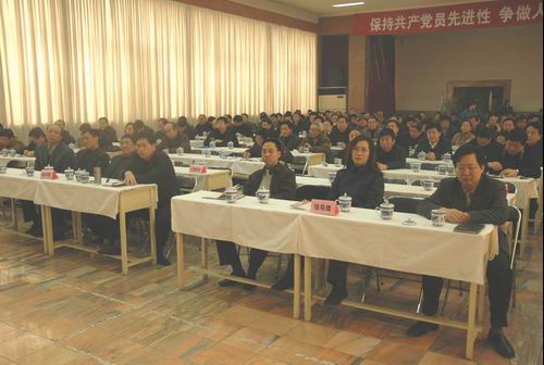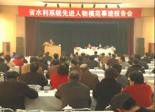 厅领导与厅机关公务员、厅直单位负责同志及保持共产党员先进性教育督导组成员听取省水利系统先进人物模范事迹报告会。