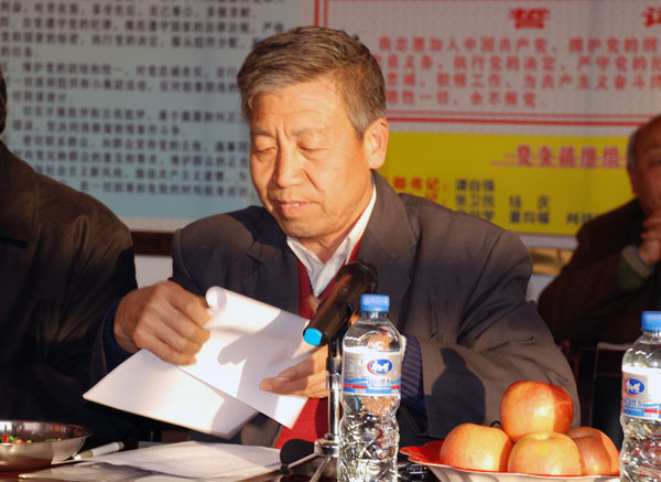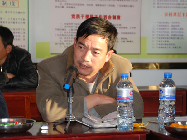 灌区农户代表介绍落实电价补贴后群众积极灌溉,粮食作物大旱之年得丰产的情况,并提出了希望和建议