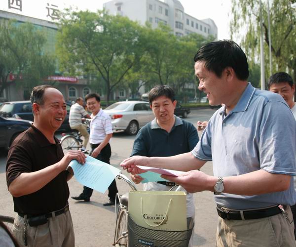 厅安委会副主任、总工程师李力向路人发放安全生产宣传资料