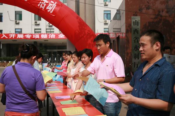 6月15日上午,省水利厅在厅大门口组织厅直有关单位进行安全生产宣传活动