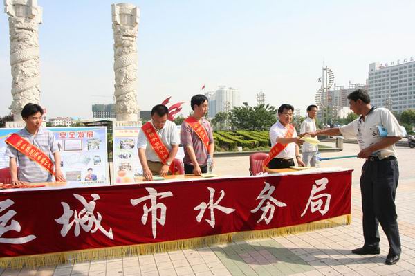 ,运城市水务局干部职工响应政府节能周号召,设立咨询台开展安全宣传活动。