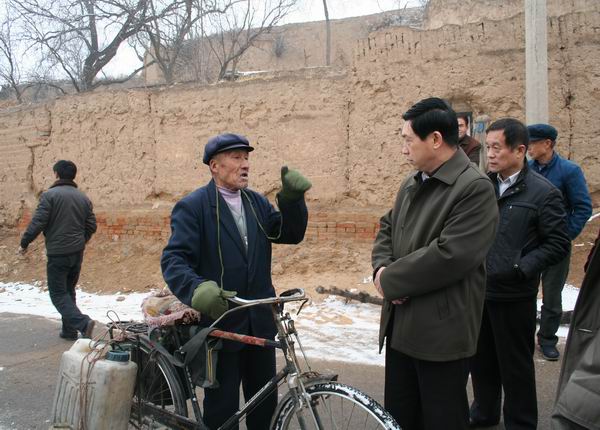 郭正义副厅长在平遥县朱坑乡兴旺村向拉水群众询问旱情