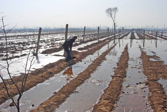 受益区农民划小畦块节水灌溉