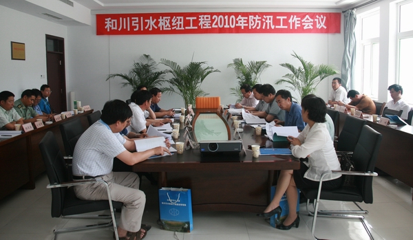 会上宣读了《关于调整后和川引水枢纽工程防汛指挥部组织机构的批复》、《关于2010年和川引水枢纽工程度汛方案的批复》和《2010年度和川引水枢纽工程防汛指挥部成员单位分工职责》;引沁入汾和川引水枢纽工程建设管理局负责人汇报了《2010年和川引水枢纽工程度汛方案》。