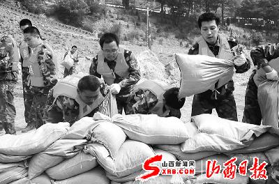 7月16日,在太原市郝庄镇董家庄村河道,迎泽区防汛应急分队正在进行“决口封堵”。为了进一步提升防御洪涝灾害、增强突发性洪涝事故的应急保障和处置能力,迎泽区举办了此次防汛应急演练。(本报记者 刘通摄)