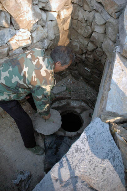 10月31日,在山西省陵川县秦家庄乡侯家庄村,农民侯书文在清理废弃不用的水窖。