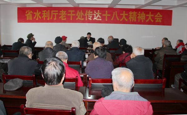 本站讯 11月19日,省水利厅离退休人员工作处根据厅党组和厅直党委的安排部署,召开了学习贯彻党的十八大精神大会。厅机关70多名离退休老同志参加了会议。