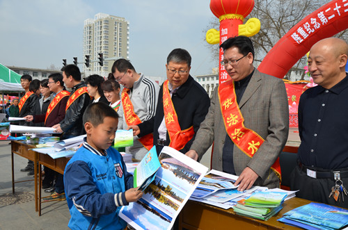 本站讯:3月22日上午,忻州市日月广场气球飘扬,人声鼎沸,热闹非凡,忻州市水利局工作人员和忻州师院大学生志愿者一起走上街头,开展了纪念第24届“世界水日”和第29届“中国水周”大型宣传咨询活动。联合国确定今年“世界水日”的宣传主题是“水与就业”。水利部确定我国纪念2016年“世界水日”和“中国水周”活动的宣传主题为“落实五大发展理念,推进最严格水资源管理”。 活动现场,丰富的宣传吸引了过往的行人,工作人员纷纷地将水法、节水条例、水资源画册等宣传资料送到市民手中,并耐心细致地解答市民提出的问题。广大市民纷纷响应,在“珍惜水资源,保护水环境,防治水污染”万人签名条幅上签上了自己的名字,表达了节约用水要从自身做起,珍惜和保护有限水资源的决心。此次宣传咨询活动共发放相关宣传资料5000余份,发放环保宣传购物袋等纪念品500多件,答问咨询人数300余人。 来源:忻州市水利局 |
