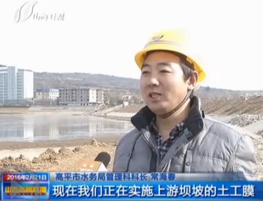 高平市水务局管理科科长 常海春:现在我们正在实施上游坝坡的土工膜和反滤料填筑等工程,同时,我们对受气温影响较大的浆砌矿石和混凝土浇筑项目采取了一定的保温措施,这样既保证了工程的进度,也确保了工程的施工质量。