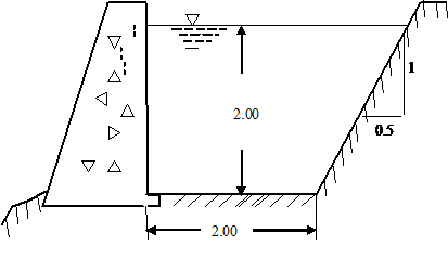 2.有一环山渠道的断面如下图所示,靠山一边按1:0.5的边坡开挖,采用糙率n1=0.0275,另一边为直立的浆砌石边墙,采用糙率n2=0.025,底宽2.00 m,渠底坡度i=0.002,求水深为2.00 m时的过水能力。