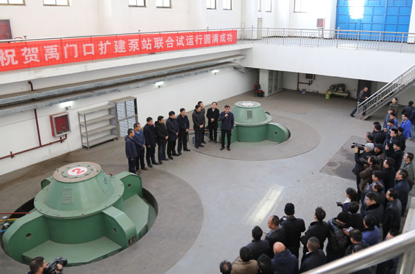 汾河清水复流北赵联接段工程禹门口一级改扩建泵站开机上水启动仪式现场