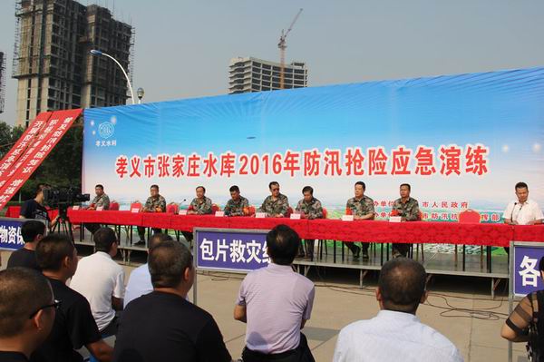 “孝义市出现入汛以来最强降雨,全市大部分地区出现暴雨,降雨量已达300mm,水库水位急剧上涨,张家庄水库上游河道爆发大量洪水。现召集所有副总指挥及成员单位负责人立即赶赴张家庄水库,进行现场会商。”7月29日,随着山西省孝义市副市长武冬祯的一声令下,孝义市张家庄水库防汛抢险应急演练拉开帷幕。