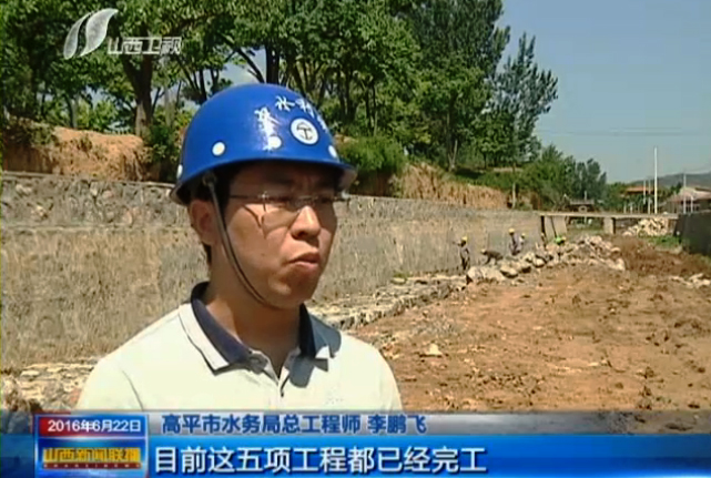 高平市水务局总工程师李鹏飞:今年我们还争取省级和晋城市级的补助资金1600余万元,对釜山水库进行了除险加固,对米山、东仓、张庄三个水库,进行了公益性维修养护,对良户河道进行了专项整治,目前这五项工程都已经完工,全市整体的行洪能力得到了极大提升。