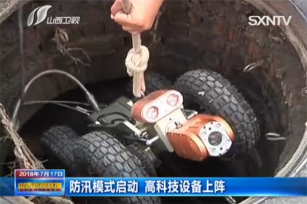 晋城台记者 郎越远:这里是晋城,我现在是在市区的新市东街,我身后的市政防汛抢险突击队正在对这条街道上所有的排水管网进行隐患排查工作。那与以往不同的是,今年我们的排查工作全部都是用我身旁的这台地下管道机器人来独立完成的,这不仅提高了井下作业的安全性,而且效率也是大大的提高。