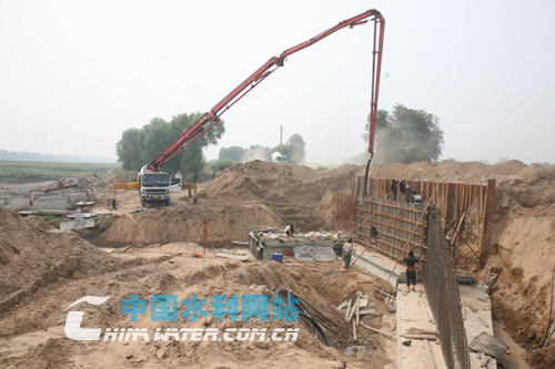 到目前为止,1~15号坝主河槽基础处理工程已基本完成,其余坝段主河槽闸底板混凝土浇筑全部完成,正在进行主河槽上游铺盖、下游消力池、海漫、及滩面预制块吊装、后浇带浇筑等施工,约完成投资2.5亿元。